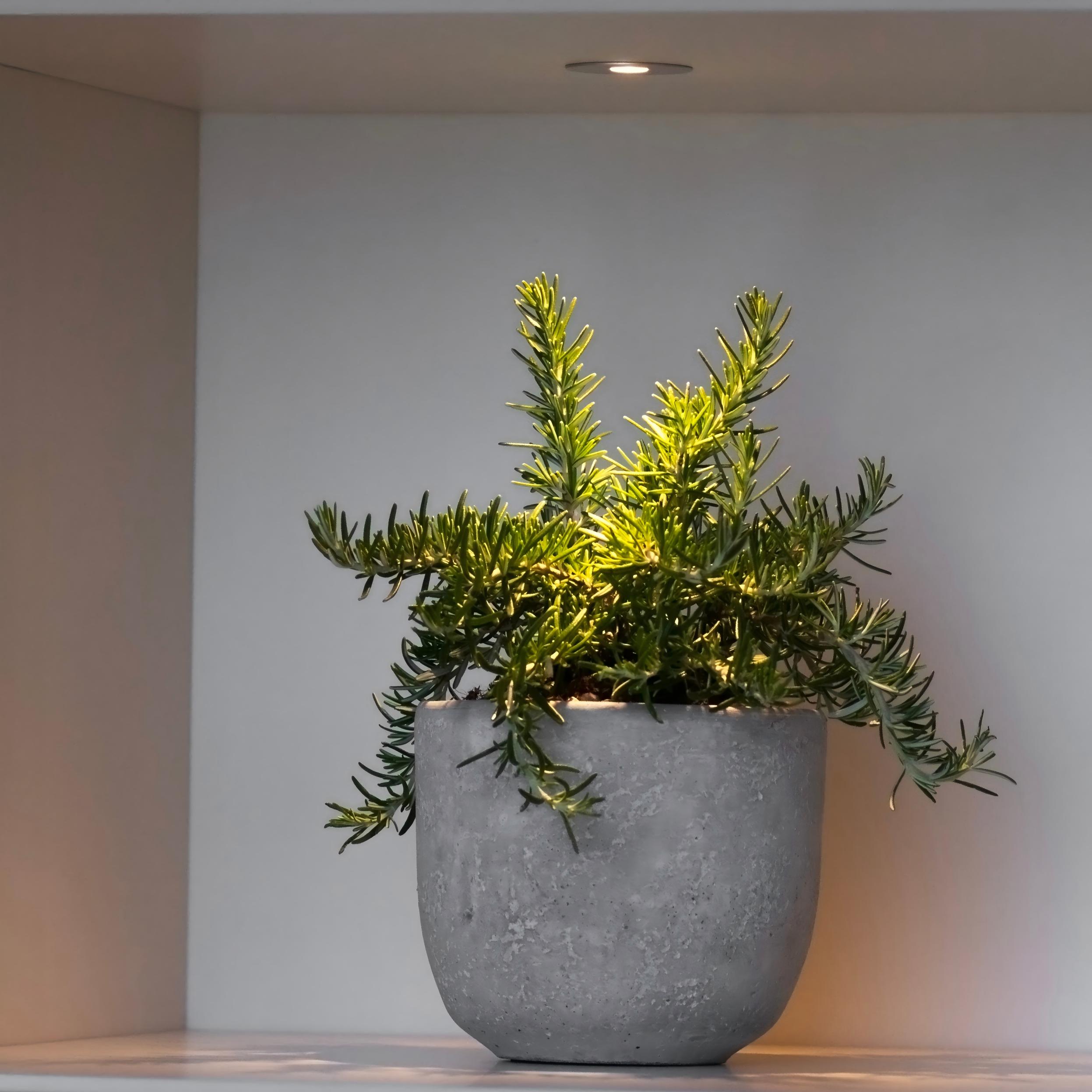 Kompakte LED-Downlights für integrierte Regal- und Schrankbeleuchtung sorgen für fokussiertes, blendfreies Licht.