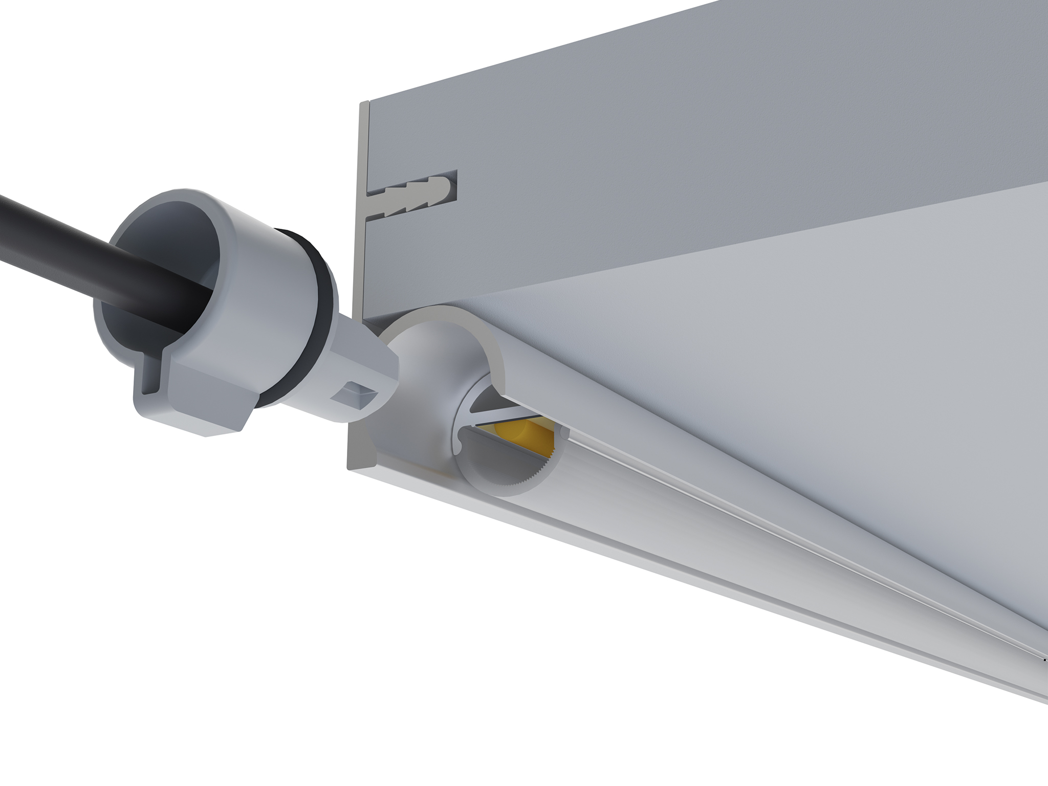 CRI 93. Steplessly dimmable. Cut-to-size freely. Plug and play system. 90° turnable light beam – the light can be turned up to 90° within the profile. Simply turn the pin to adjust to the desired position.